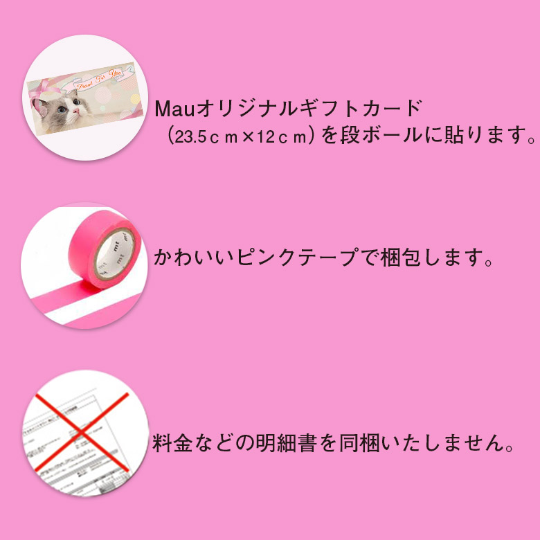 ・有料となります。税込み220円です。 ・ギフトカードに個別のメッセージやお名前などの記載はできかねますので予めご了承くださいませ。 ・Mauオリジナルキャットタワーのみギフト包装が可能です。