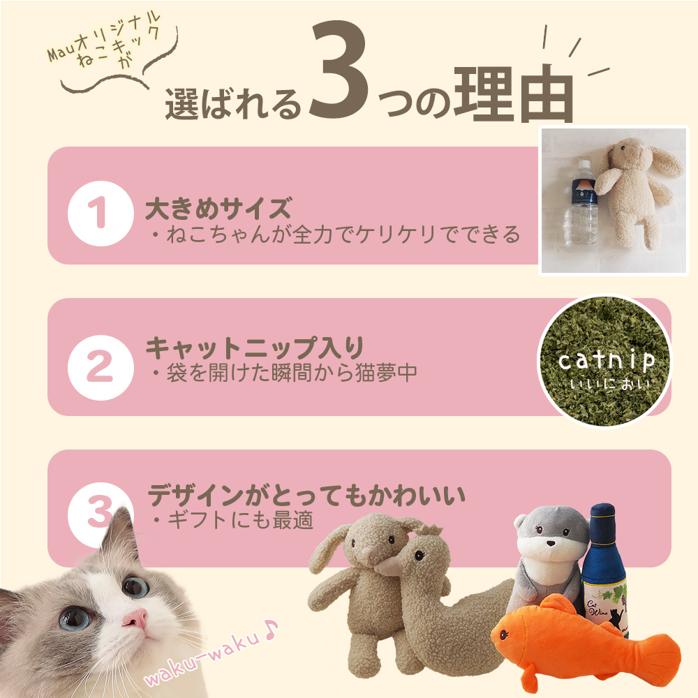 お客様の声から生まれたねこキック!Mauしかないサイズとボリューム感!【ねこキック かわうそ】特大 キャットニップ入