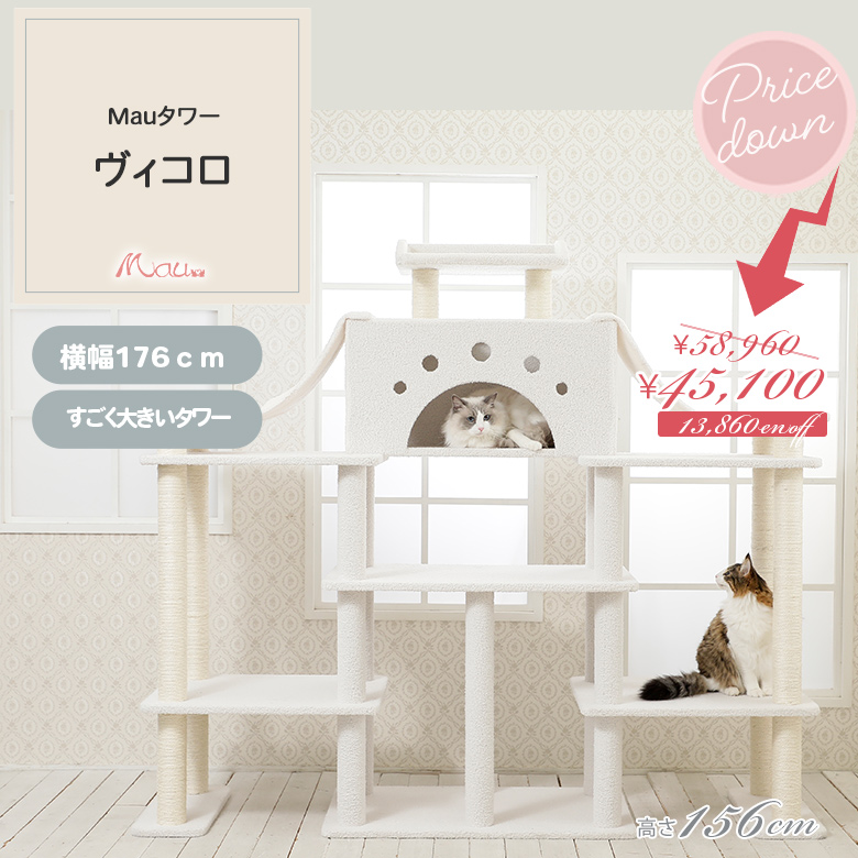 安定感抜群タワー!Mauにしかない大型デザイン!最終販売Mauタワー ヴィコロ キャットタワー 大型猫 多頭飼い 据え置き 安定